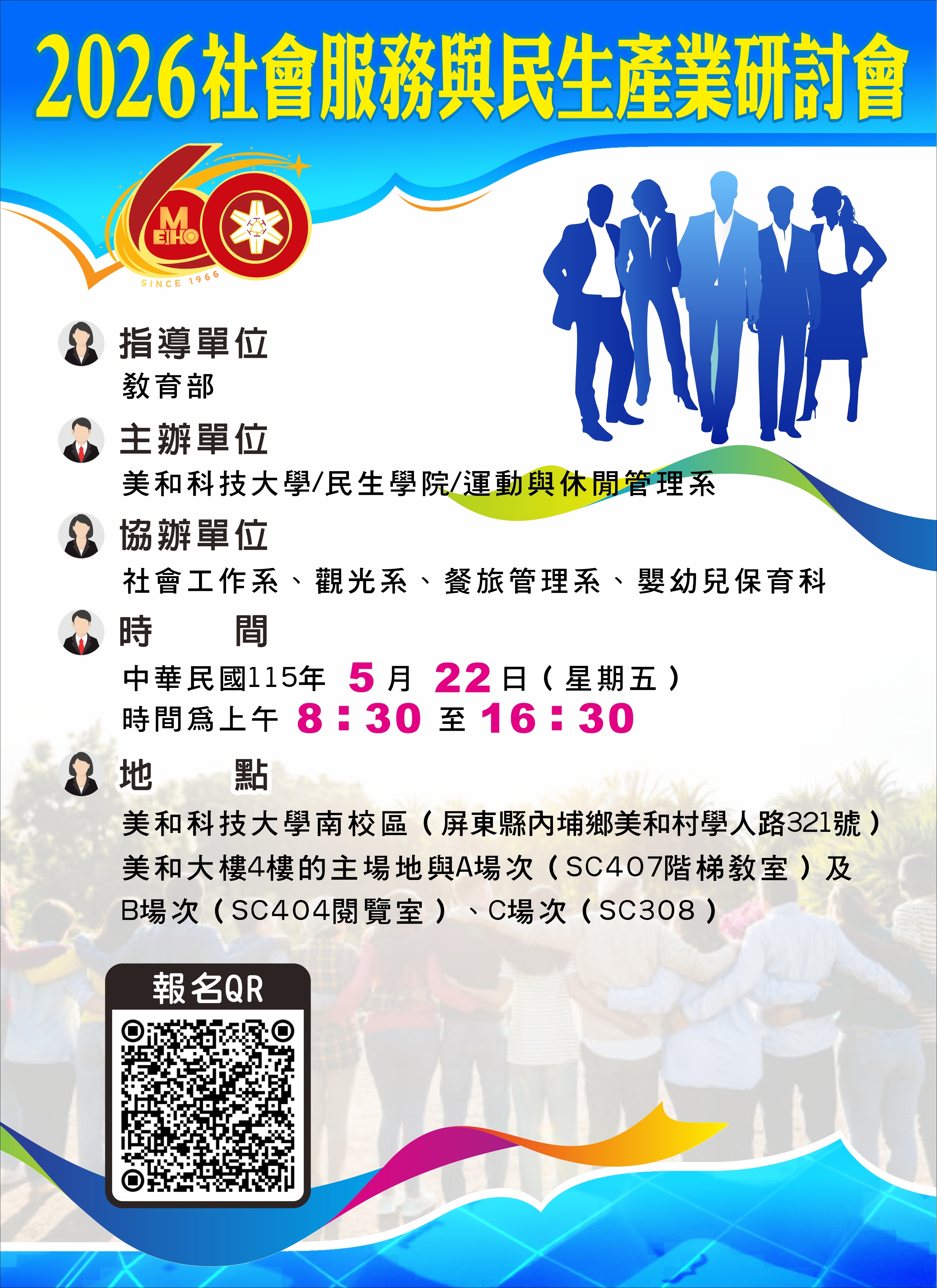 2026社會服務與民生產業研討會(觀光餐旅、運動休閒、社會服務與嬰幼兒保育)